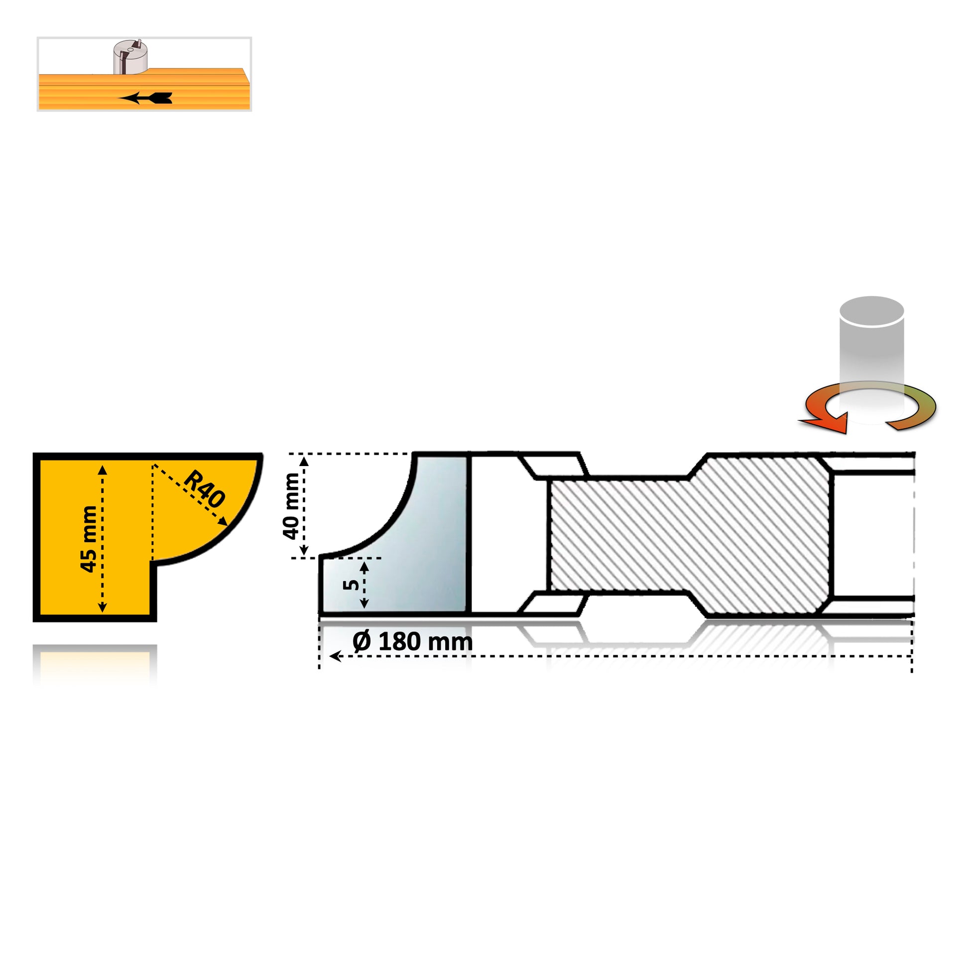Freză pentru Lemn Sfert de Cerc Concav R40 mm - HSS Premium