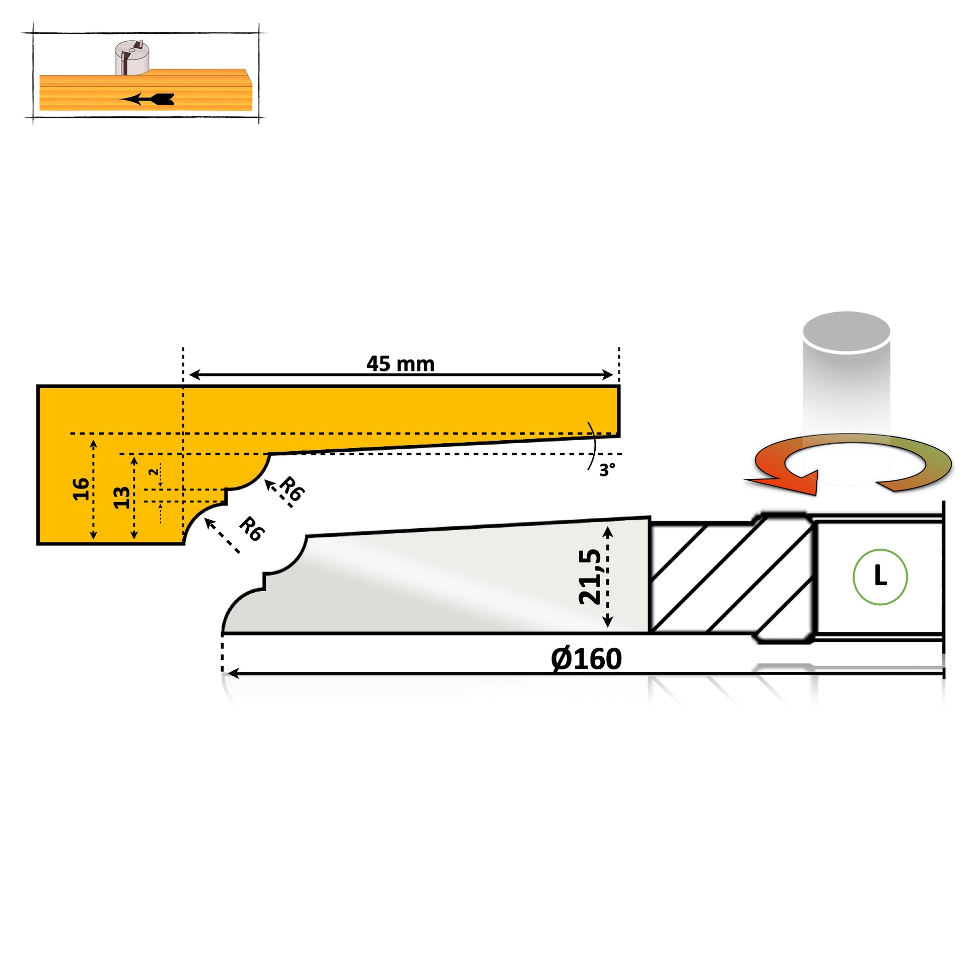 Freza pentru Tablie Uși Profil №13 | Brazat cu – HSS sau Vidia